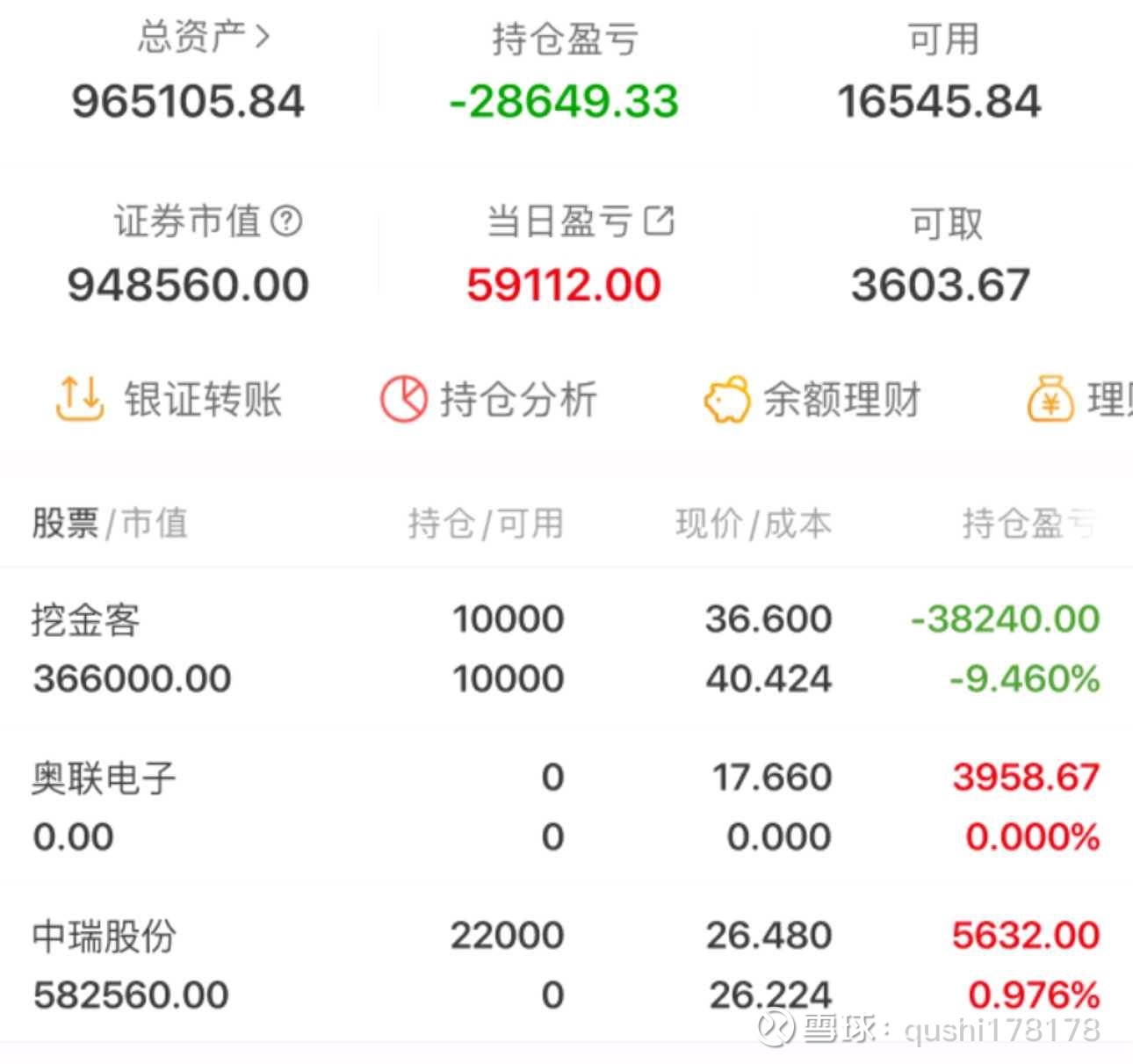 50万到500万第39天。继续持有挖金客,卖出奥联电子,买入中瑞股份。今天奥联电子大涨,17以上就出来了,还是出早了,挖金客继续持有不动,买入中瑞股份,近期量能逐步放大,波动加大,加速上涨在即,随时会有大阳线出来,看明天会不会如愿大涨#实盘分享# #股票# #财经#