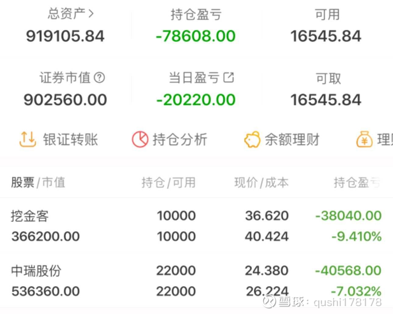50万到500万第42天,继续持有挖金科和中瑞股份。
