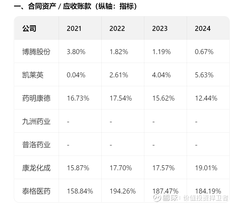 这是7家CDMO合CRDMO和CRO公司的2021-2024营收,应收账款,合同资产数据,根据表格数据可以得出结论,临床和临床前阶段的合同资产/应收款是最高的,而商业化生产CDMO的该项比值是最小甚至为零。那么可以得出结论,如果公司接到更多的临床前及临床阶段的业务,合应比应该是增加的,反之,如果公司接到更多的商业化生产阶段订单,合应比应该是减少的。