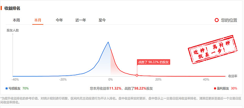 本月亏损股友还70%,今天一天大家应该都回来不少了。