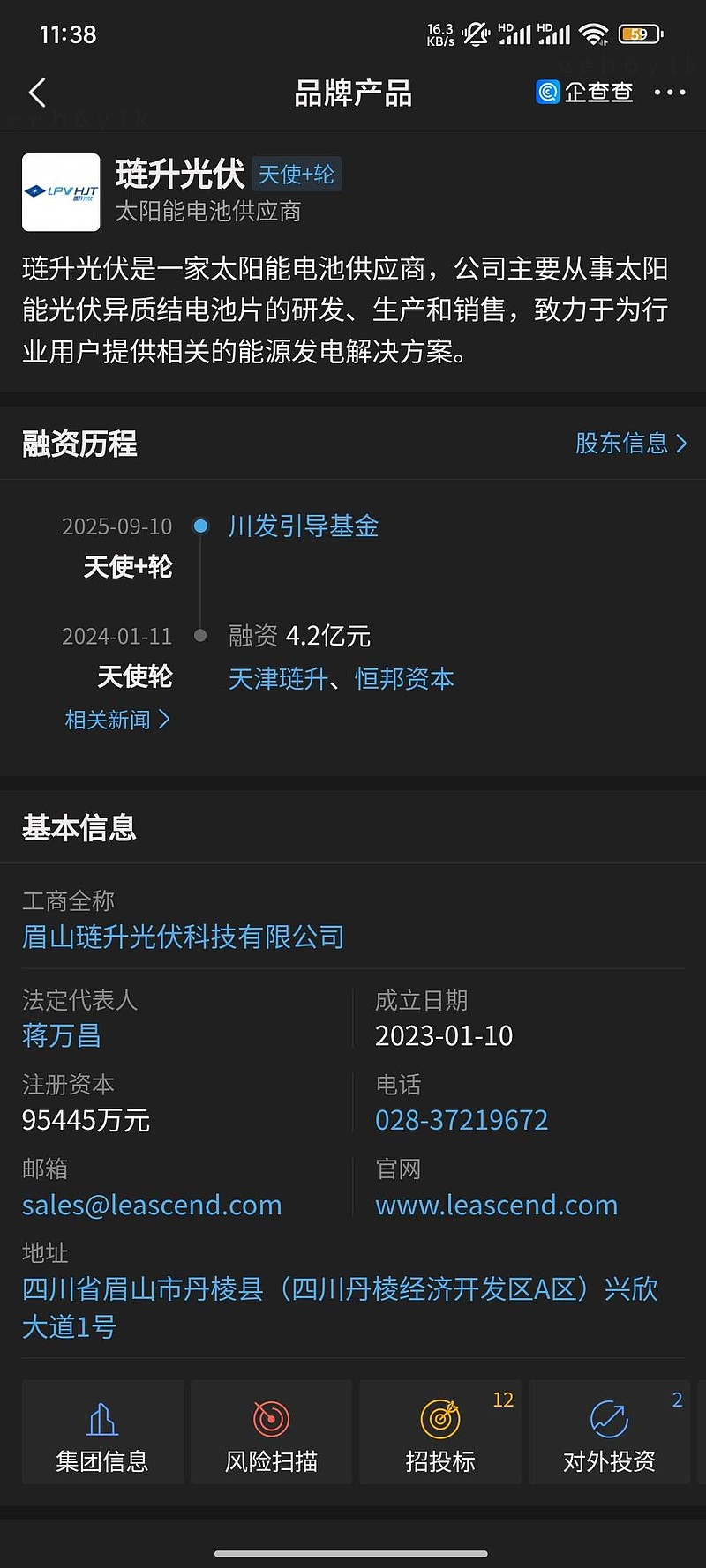 近日,据企查查获悉,眉山琏升光伏科技有限公司(以下简称“琏升光伏”)获天使+轮融资,本轮投资方为川发引导基金,融资金额暂未披露。