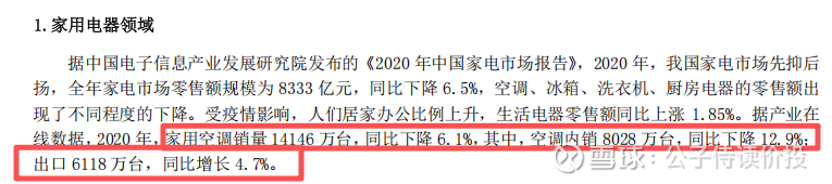2020年家用空调下降6.1%,空调内销下降12.9%,出口增长4.7%。