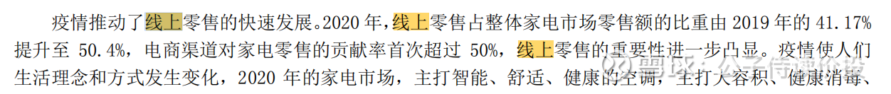 可以发现,整体家电销售是正在从线下转型成线上模式。2020年这一年增长了接近10%的增长。