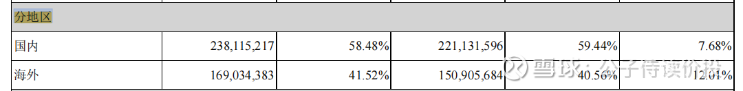 这是2020年的财报,可以看到11.9%的业务是卖到国外的产品。还是主要依赖国内。