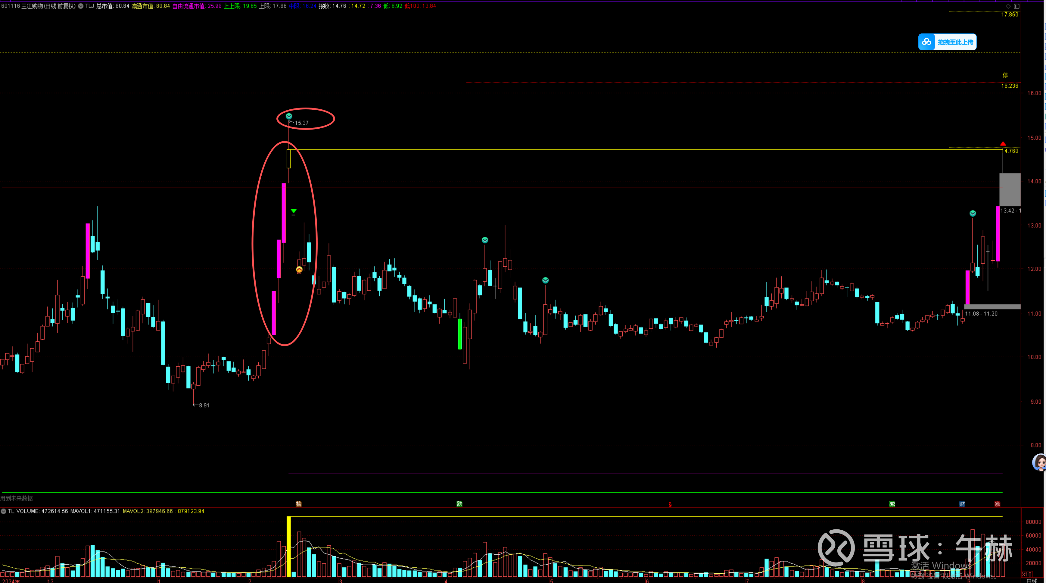 突破稍近的左侧4板,叠加涨停密度6趋势4板加,近期2板,分时跟风三江购物;传媒的新生力量;左侧远期有龙头血统;明日经过前高抛压检验后再议;