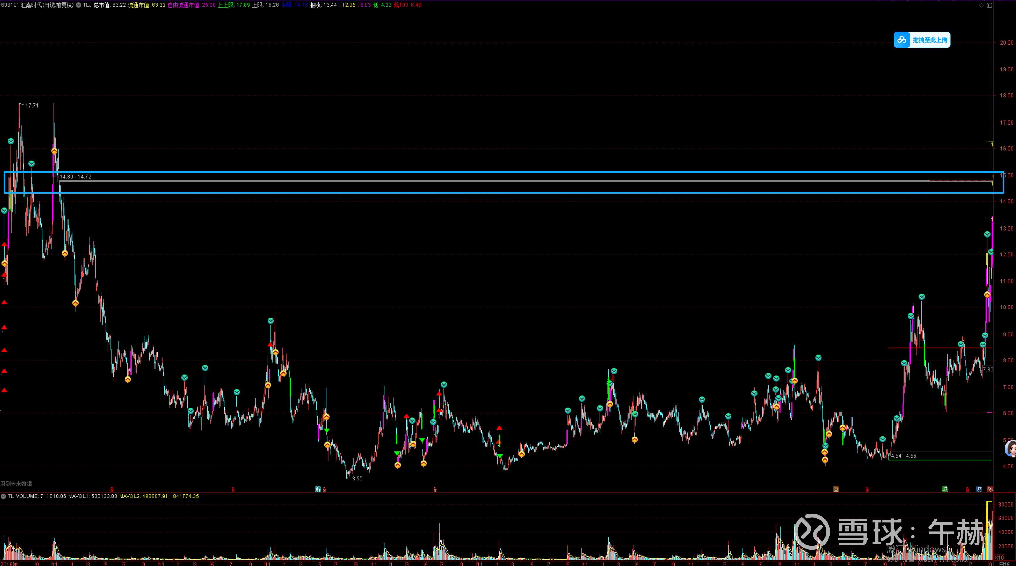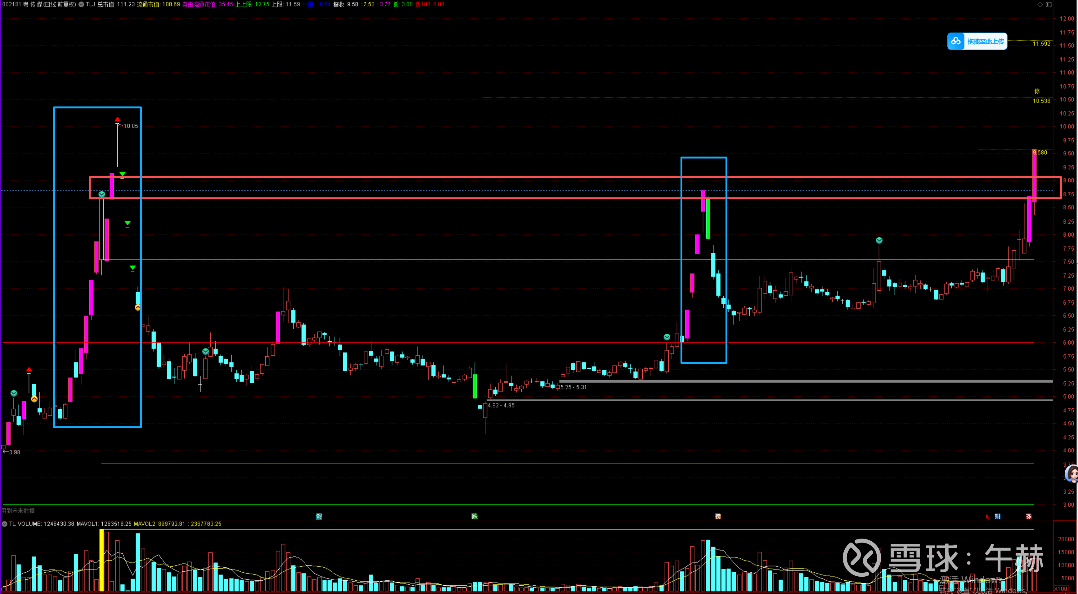 周一助攻天通预期带领通信复苏,被砸;天通陨落;留下青山趁着辨识度周二反包;今日开出加速缺口秒板;早盘两次打开换手充分;7天4板,1加1加2趋势3板加高度;带领通信走强;在我眼中同为小龙头;领导力明显优于卧龙;