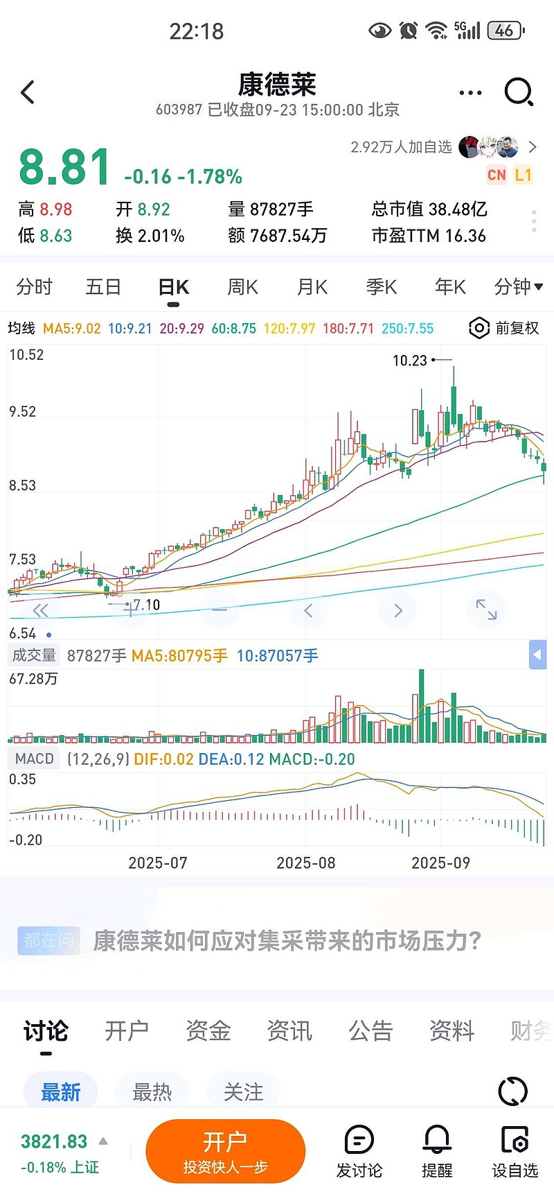 $康德莱(SH603987)$