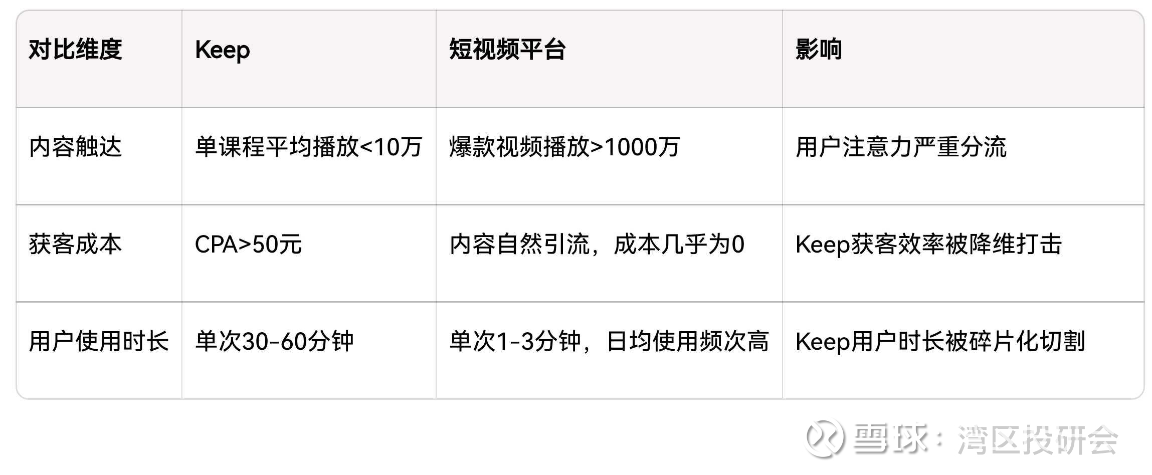 平台提供10000+训练视频,但内容与B站、抖音等平台高度重叠;用户"尝鲜"后流失,难以形成长期粘性和复购。