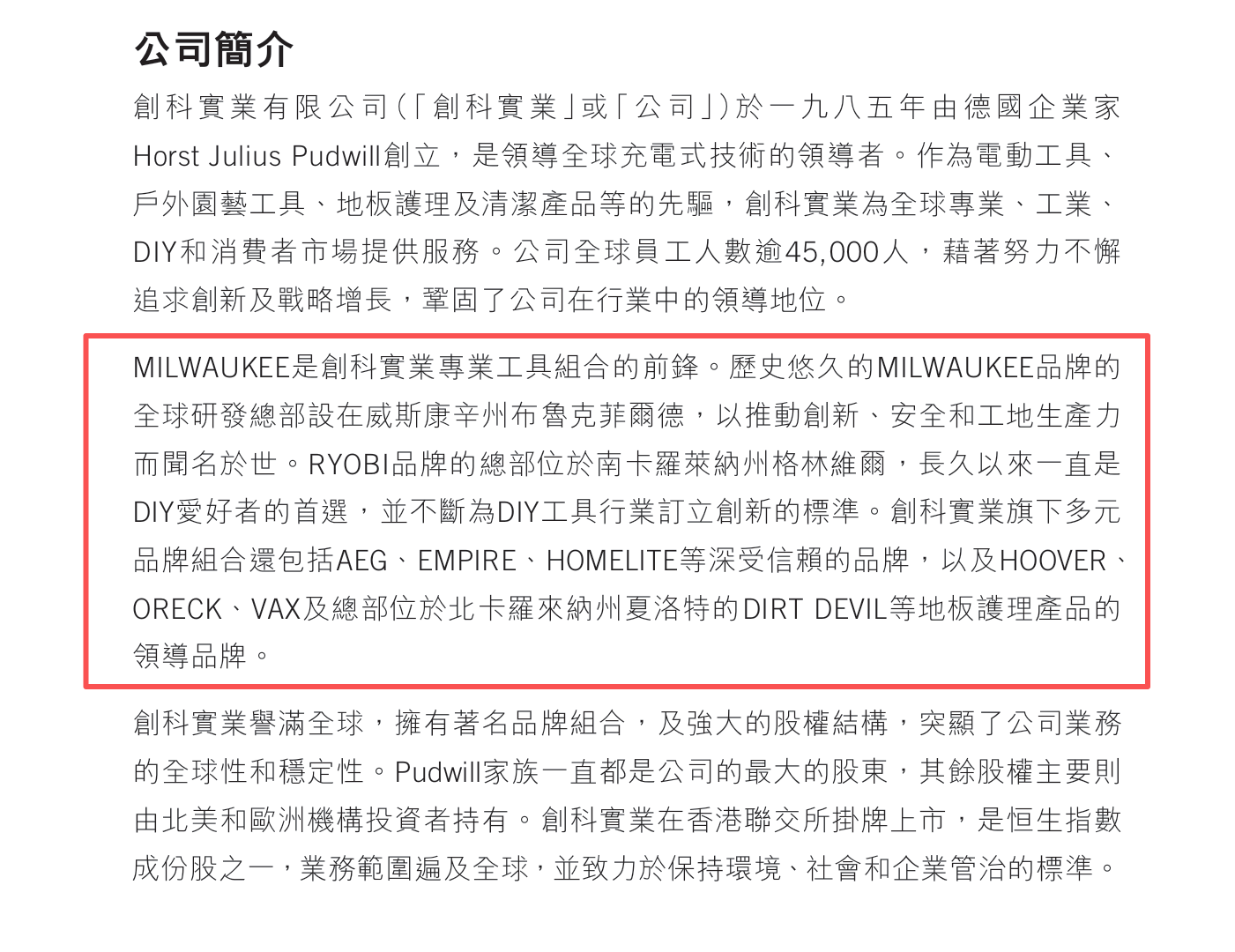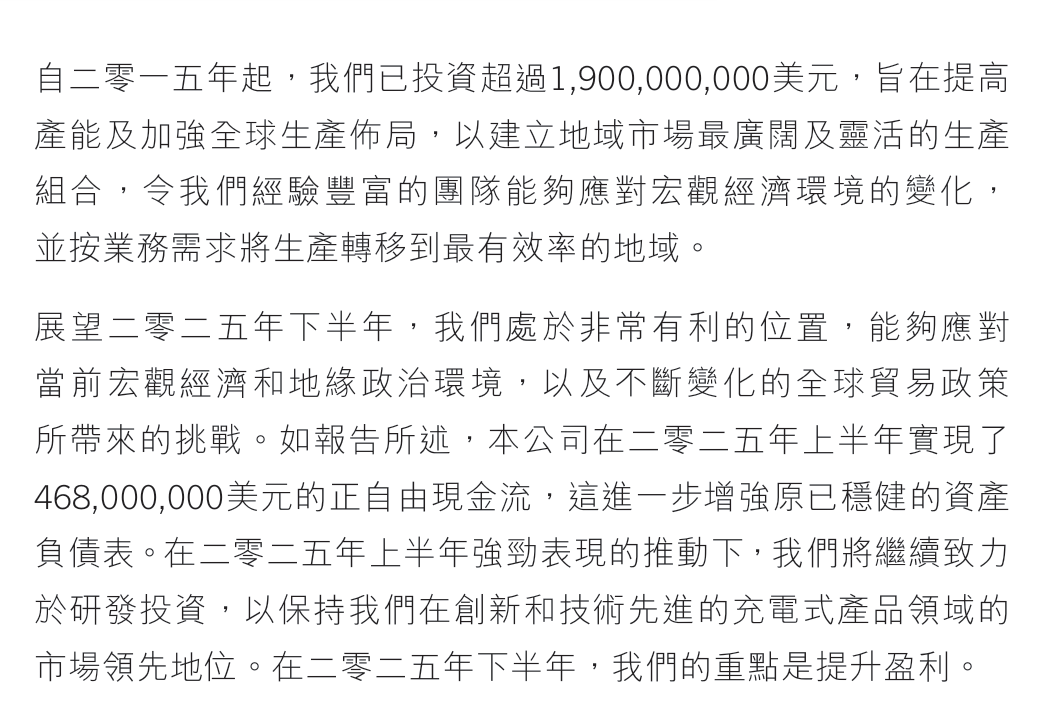 其官网介绍自己为充电式电动工具市场领导者,其主要收入来源在北美洲,占比约为75%,乍看之下似乎受到关税影响非常大,但实际上在多年的发展后已成为真正全球化的公司,相当多旗下子品牌的总部位于美国。