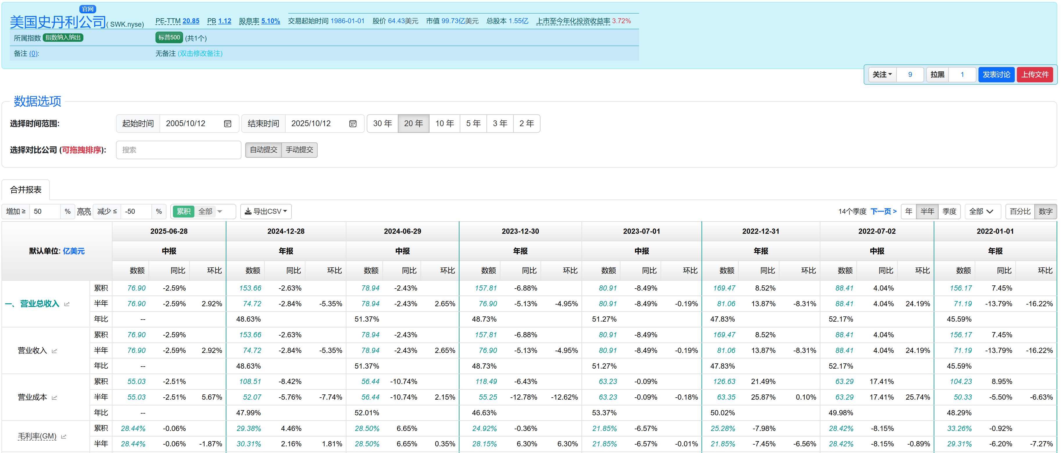 创科实业的收入以及利润近几年一直稳步增长,在2025上半年依然实现了约7%的收入增长和约14%的利润增长,资产负债率近几年甚至有所降低,现维持在50%出头的水平。