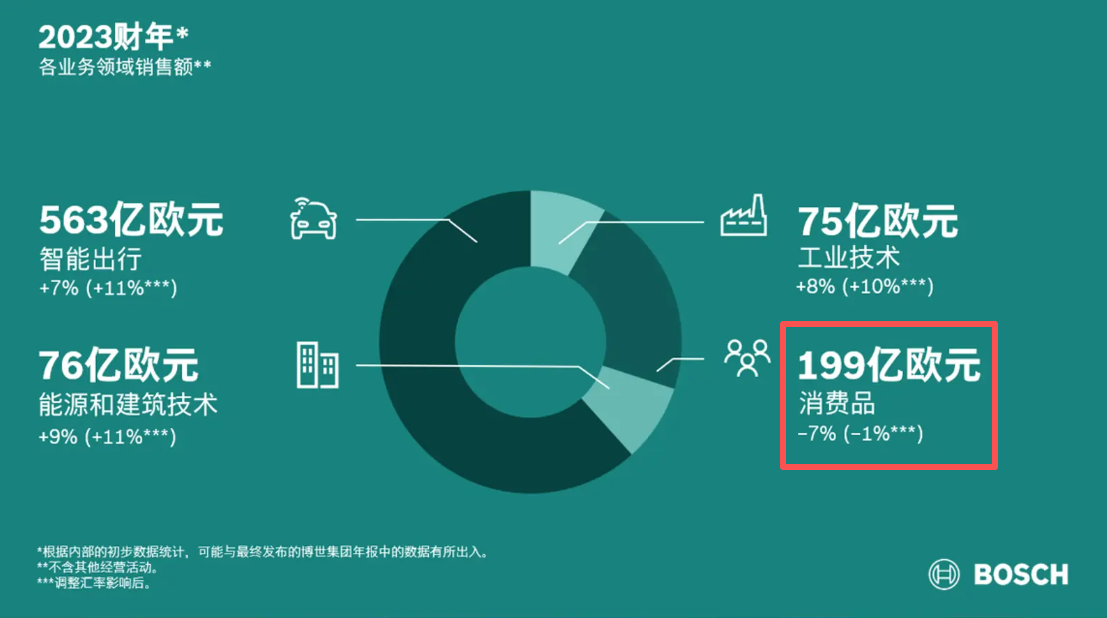 2023财年博世的消费品领域(包含电动工具和家用电器业务)为下滑,可以看出其电动工具业务表现也不容乐观。