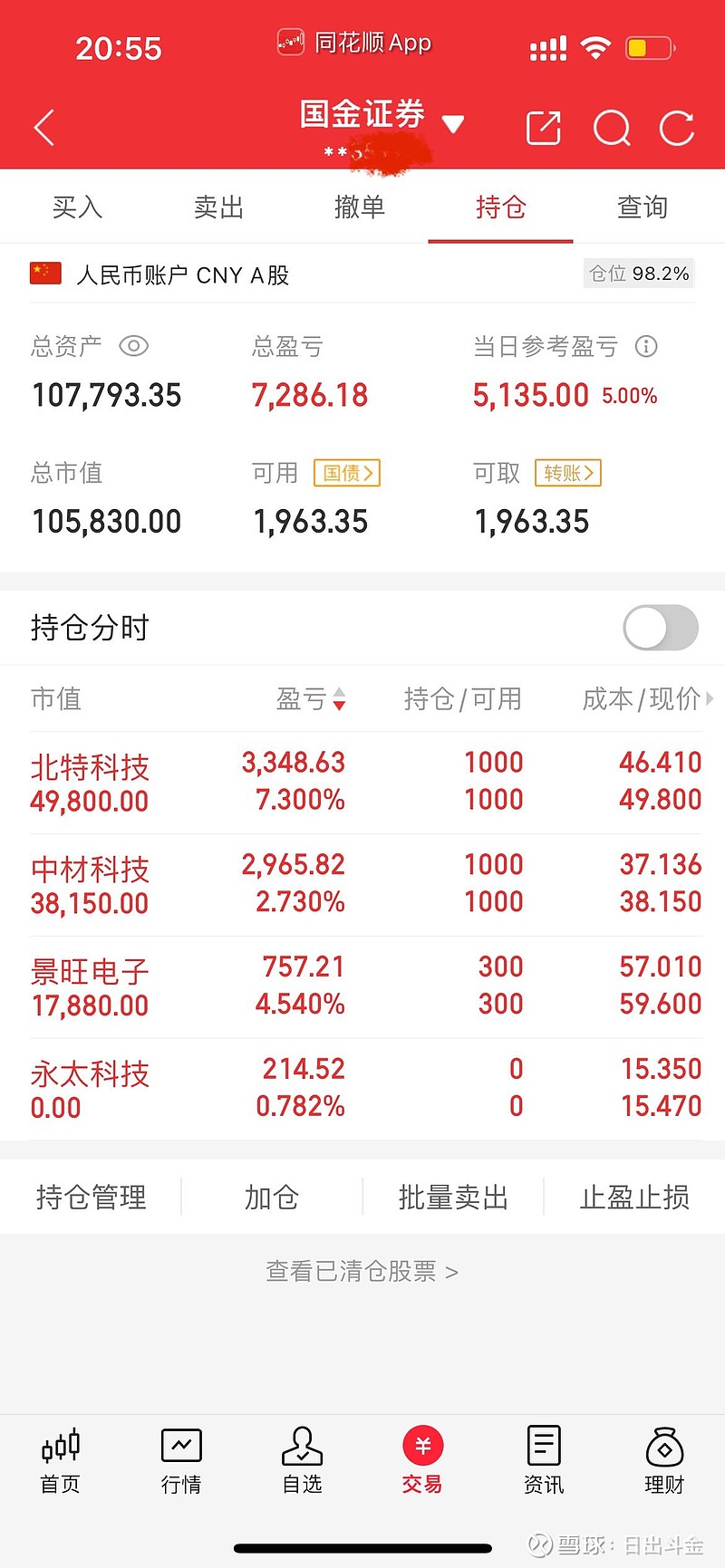 附图:今日父亲的实盘账户