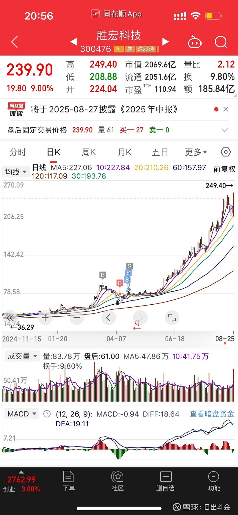 但是,我卖出后胜宏科技便开启了一轮大行情,一直涨到了今天的249元,而且上涨行情还远远没有结束。
