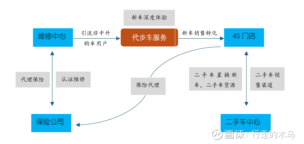 一、 二手车业务与新车销售的协同:在4S店购买新车的客户将旧车置换,旧车成为二手车中心的车源,在客户为了省事或4S提供精品补贴的情况下,4S店往往可以获得一个有竞争力的价格,可以获得额外的利润。作为二手车的来源的同时,4S门店也是二手车销售的渠道。 二、 维修中心的代驾车服务与新车销售的协同:中升购买的代步车都是中升在售的热门车型,非中升新车客户在中升维修中心进行维修保养,可获得中升在售车型的深度试驾体验,为新车销售引流和达成成交。 三、 维修中心、4S店跟保险公司的合作:中升的4S店,维修中心可代理保险公司的车险,保险公司则为维修中心提供事故车维修线索,认可中升维修中心的维修报价和结果。