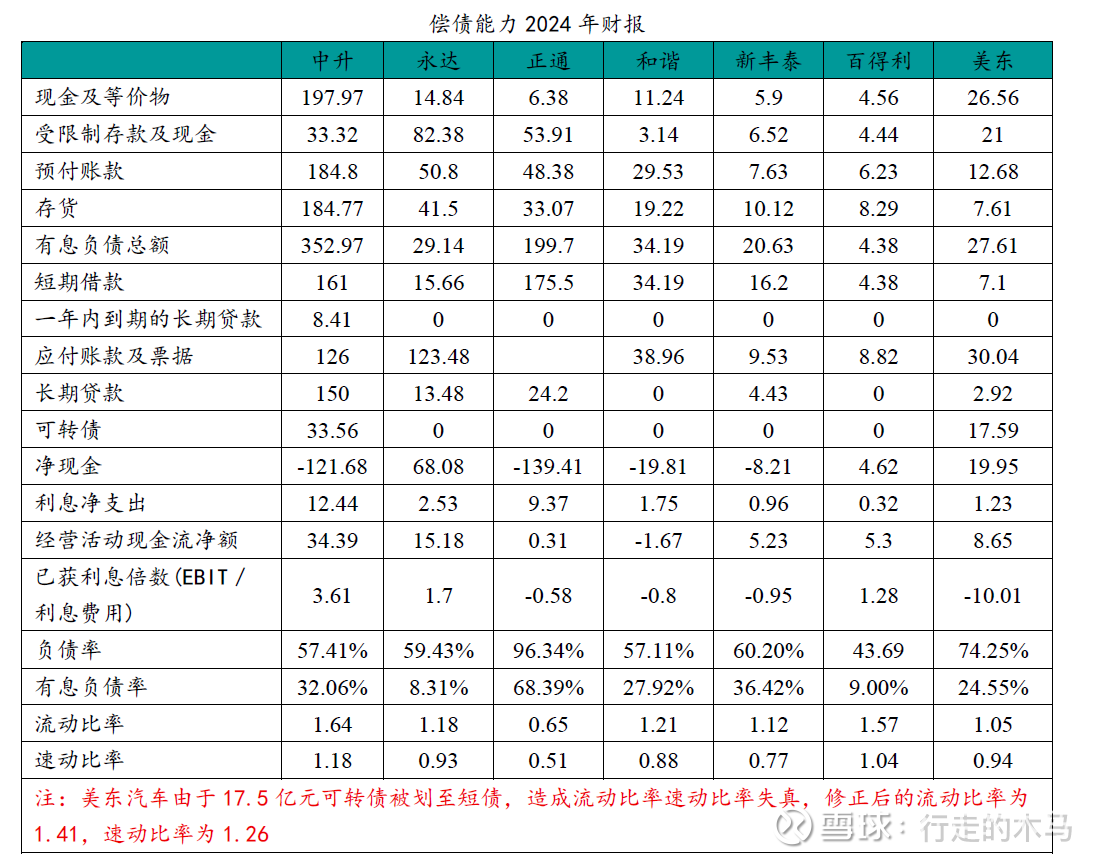 偿债能力:利息保证倍数3.61,远高于同行,是永达的两倍有余。在流动比率和速动比率方面也是行业最优水平。