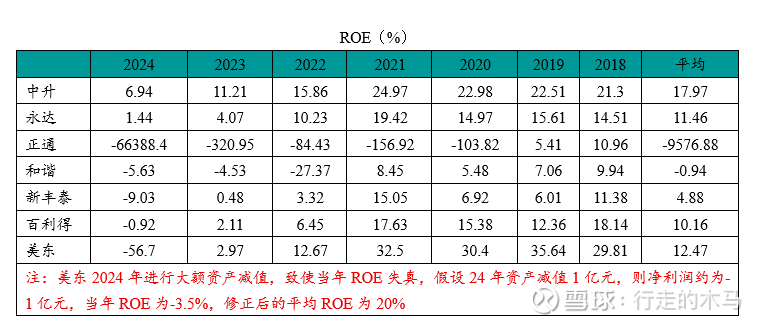 中升的ROE一直是行业领先水平,且相对于其他同行,表现出更强的稳定性。美东的平均ROE由于2024年的巨额资产减值而大幅下降,若进行修正,美东的平均ROE高于中升的,但美东的ROE稳定性较低。
