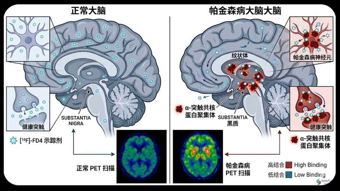 相比于2024-2025年公布的早期探索性数据(主要是小样本量的PD和健康对照),这次报告展示了从“定性显像”向“定量分型”的跨越,在“PD 活体显像”这一垂直领域已占领高地。