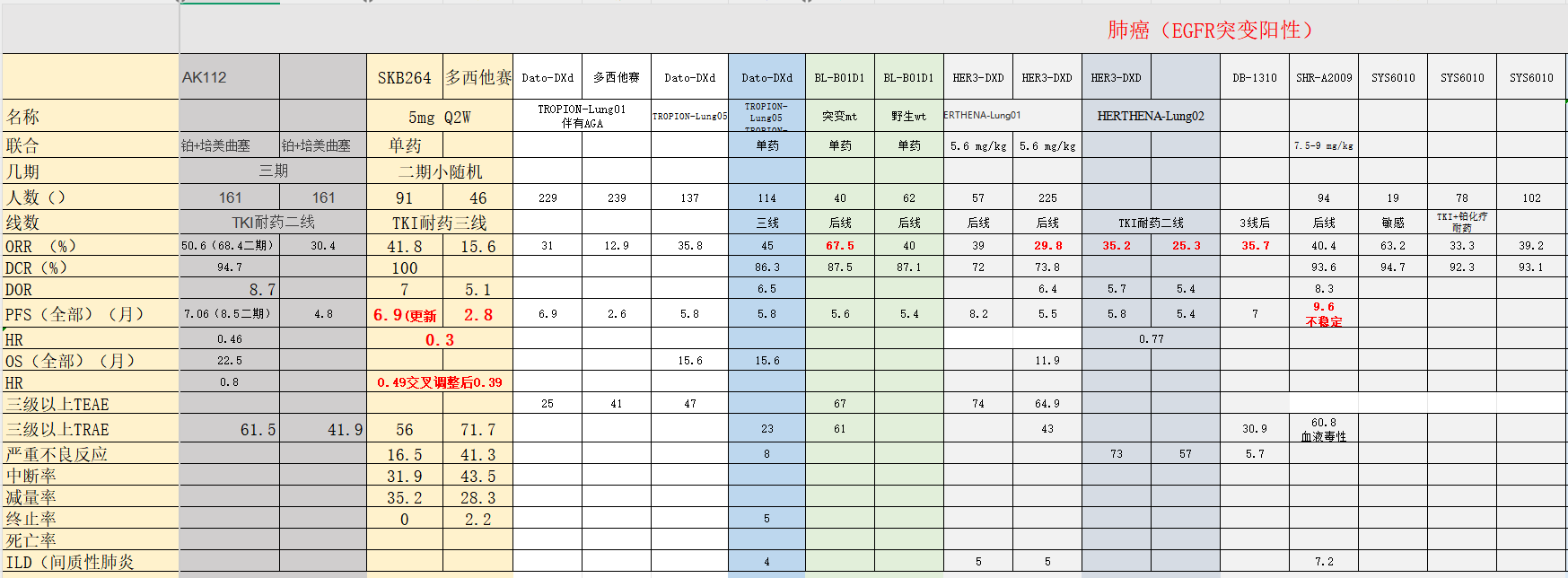 而TKI耐药的适应症疗效方面可能百利天恒的B01D1在ORR更好但安全性不过关,前线推对患者不负责任。这样安全性相对好的石药的SYS6010可能也有机会。B01D1和6010在靶点EGFR上面是一样的,B01D1增加了另外一个靶点HER3,可能会有疗效的提升。