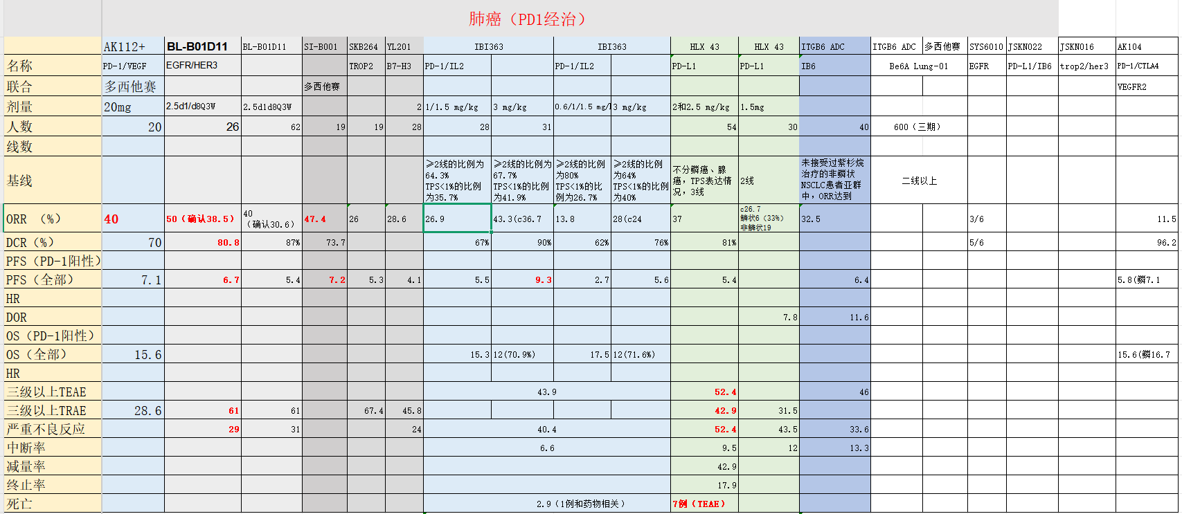 国内几个ADC大药,毒素都是拓扑异构酶抑制剂,靶点集中在EGFR、HER3、TROP 2和PD-L1,在非小细胞肺癌和乳腺癌上面处于竞争关系。