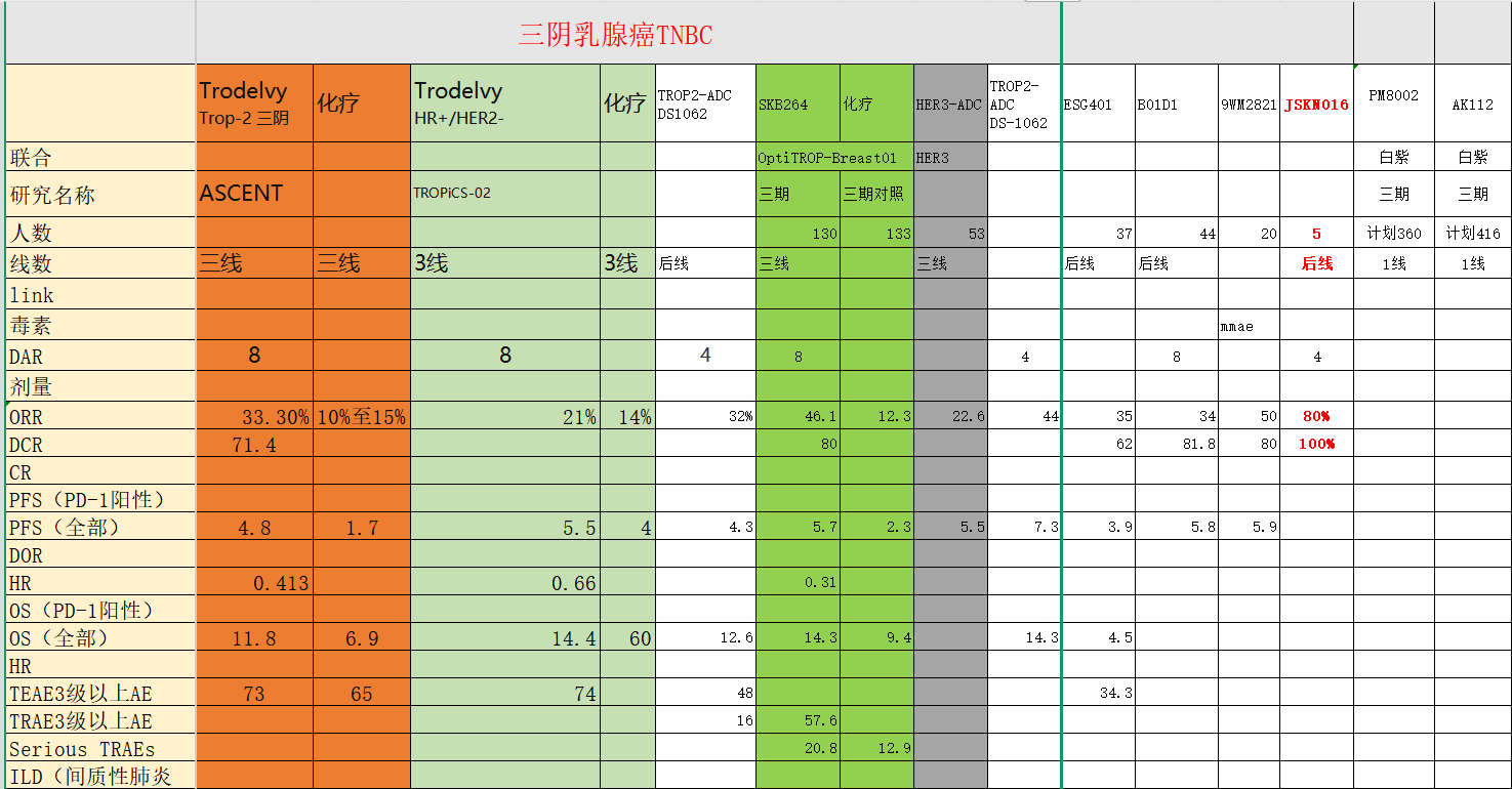 TROP2单靶点的科伦博泰的SKB264 迟早可能会和康宁杰瑞的JSKN016的TROP2/HER3双靶点PK一番,谁是王者需要时间来考验。
