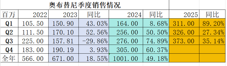 诺诚健华的三季报的销售收入超预期,这里只统计奥布替尼的情况。其实整个公司的收入是11.2亿,增长59.8%,一个是BD和奥布的增长。