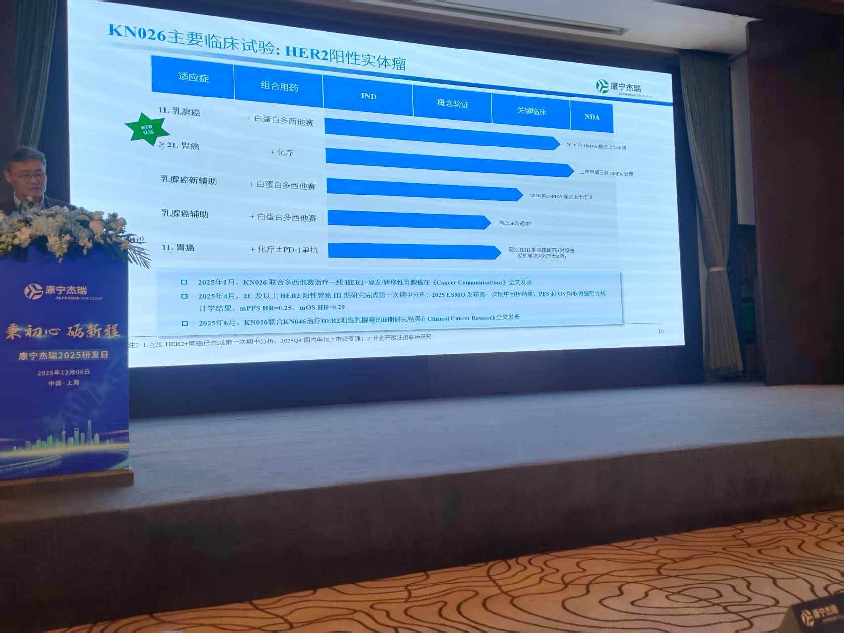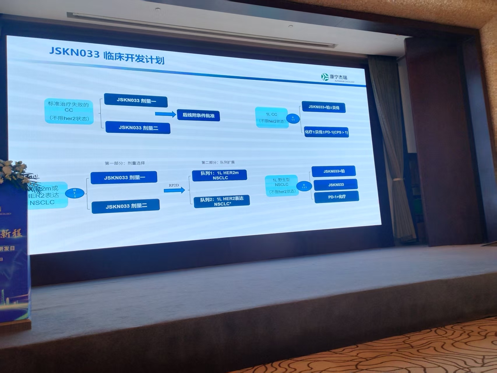 033的开发计划的重点是皮下注射峰值浓度低,安全性好,(毒性和峰值浓度相关,疗效和稳态浓度相关)。033的肺癌在中山肿瘤开展,探索宫颈癌的全人群和肺癌的HER2表达人群并且再探索全人群的。