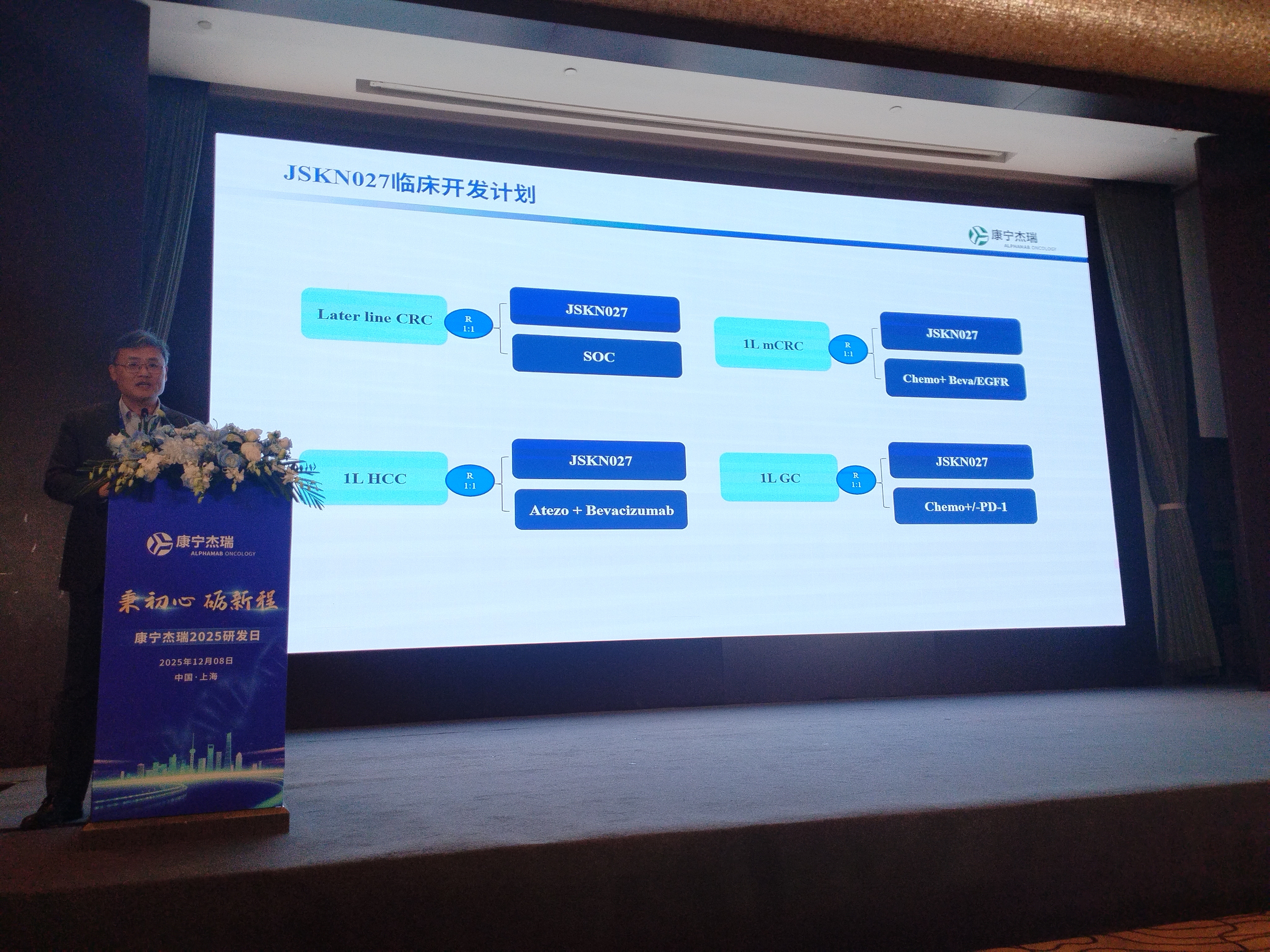 027,免疫2.0+ADC2.0 ,重点开发后线和一线结直肠癌、一线肝癌和一线胃癌。因为雷莫芦单抗是在HCC ,GC 和结直肠是获批上市的。027的安全性比其他的ADC好很多,剂量上去了,免疫功能和抗血管功能都可以发挥出来。