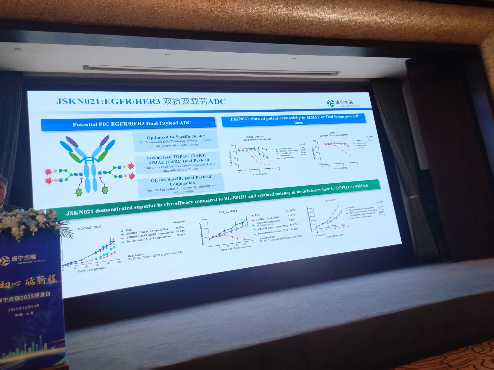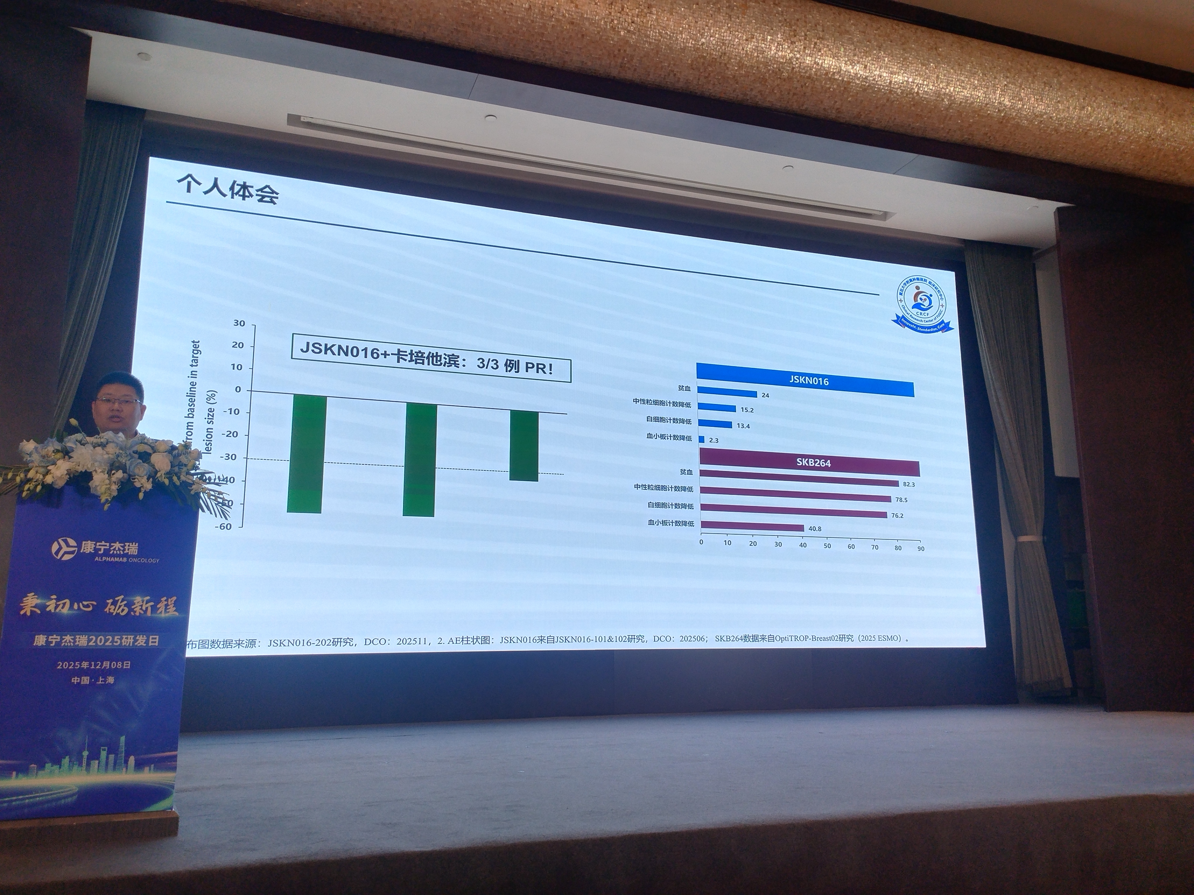 4、张剑教授的点评“康宁一直在改变”,“技术决定未来,临床加速推动”,张剑教授的意思是决定康宁的未来的是他的技术,只要有技术就会再次站起来。过去做ADC为了追求ORR,都采取了DAR8的结构,结果安全性不够好,联合治疗出现短板,而康宁杰瑞,通过DAR4和糖基定点偶联结合解决安全性,通过双抗靶点解决异质性问题,这个就是张剑教授说的“技术决定未来”。