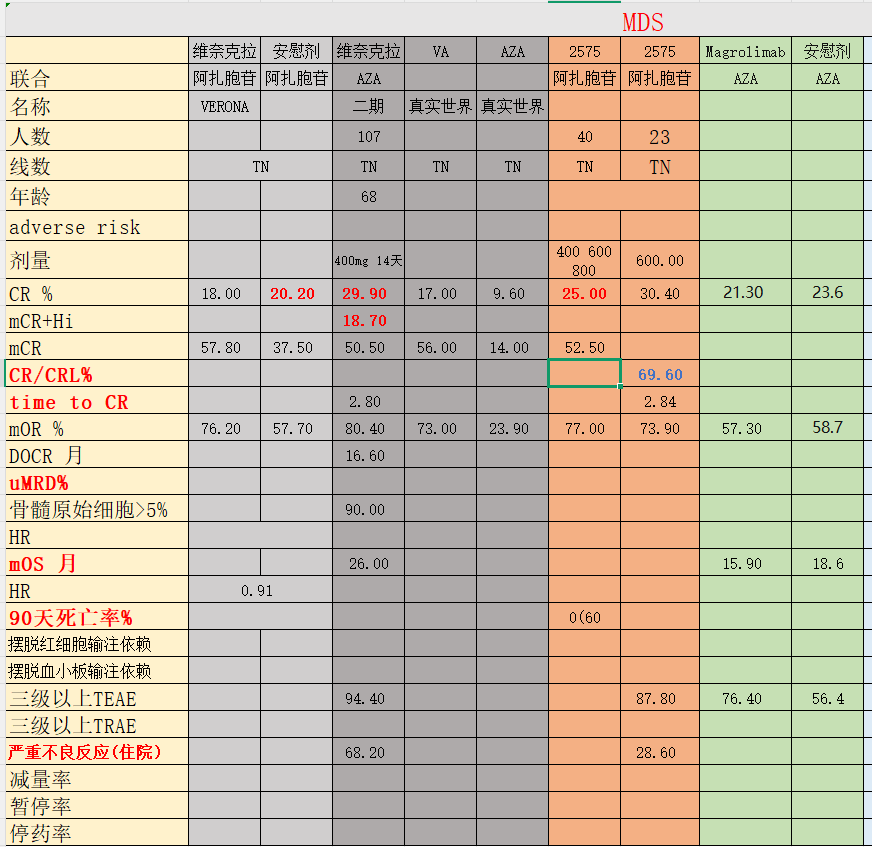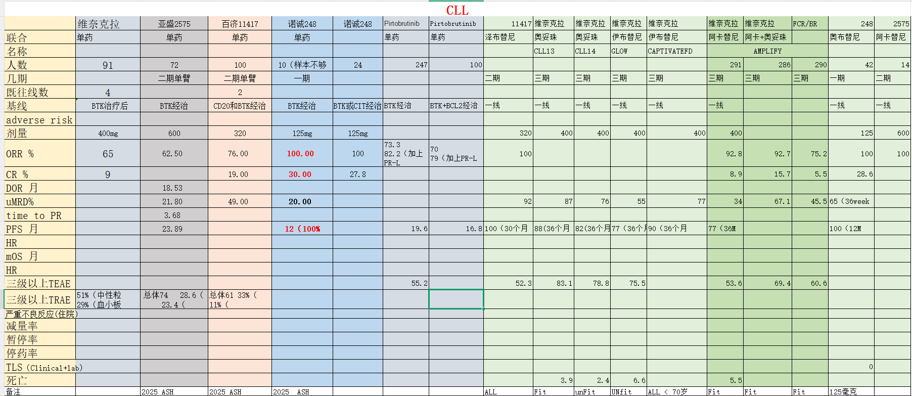 大俊最怕的就是拿2575比较疗效数据,因为临床前的分子就不行,临床的数据确实也证明了这一点。AML最好的数据是诺诚的248(CR+CRi率判断),MDS还不好判断,MCL最好的数据是诺诚的248(PFS和ORR判断,全球CDE第一个突破性疗法认证),CLL最好的是百济的11417+泽布替尼(固定疗程的uMRD阴性率和PFS)。