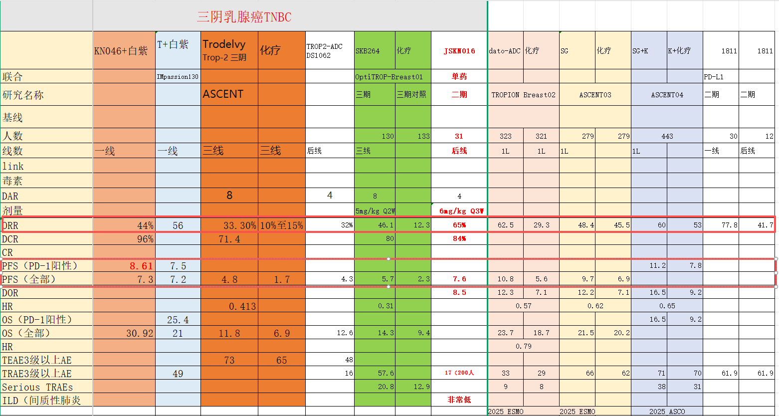 还有一点,016的入排标准里面,“既往接受过含拓扑异构酶Ⅰ抑制剂类毒素的抗体偶联药物(ADC)治疗(靶向TROP2的ADC除外)”,也就是说,TROP2的ADC也就是科伦博泰的SKB264的耐药患者和SG的耐药患者也是可以入组的,其中很多患者是TROP2靶点丢失了,毒素没有耐药,这样HER3靶点就可以起到效果,TROP2/HER3双靶点的优势就体现在这里。