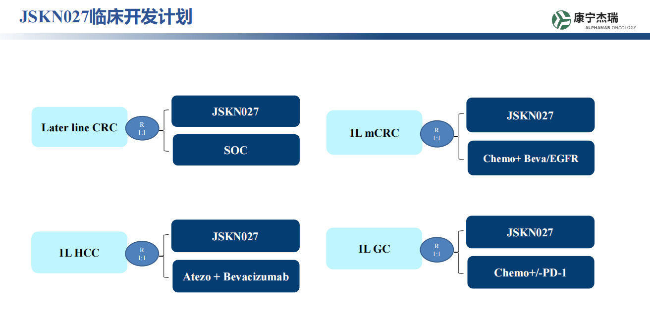 2026年3月17日,中国苏州,康宁杰瑞生物制药(股票代码:9966.HK)宣布,公司自主研发的PD-L1/VEGFR2双特异性抗体偶联药物(ADC)JSKN027治疗晚期恶性实体瘤的Ⅰ期临床研究(研究编号:JSKN027-101)已完成首例患者给药,经过7-8个月剂量爬坡,可能在年底就会看见027的初步数据了。