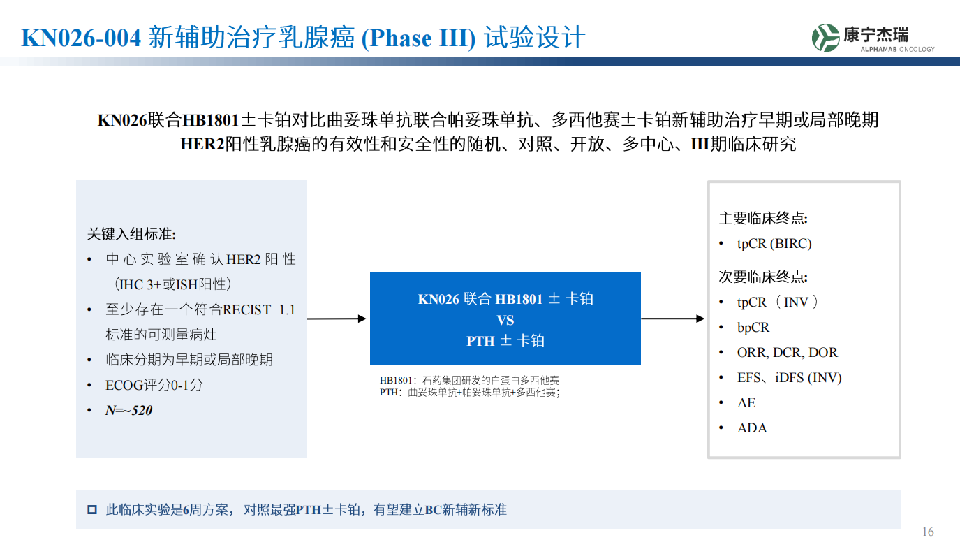 康宁杰瑞和石药宣布他们合作的KN026+白蛋白多西他赛 头对头 战胜了 曲妥珠+帕妥珠+多西他赛的THP疗法在HER2阳性新辅助乳腺癌的成功,市场可能对这个临床的价值影响力还没有引起足够的认知,我们需要明白一个道理,这个临床的成功在全球市场首次证明了一个开创性时代:双抗分子战胜两个单抗分子的联合。