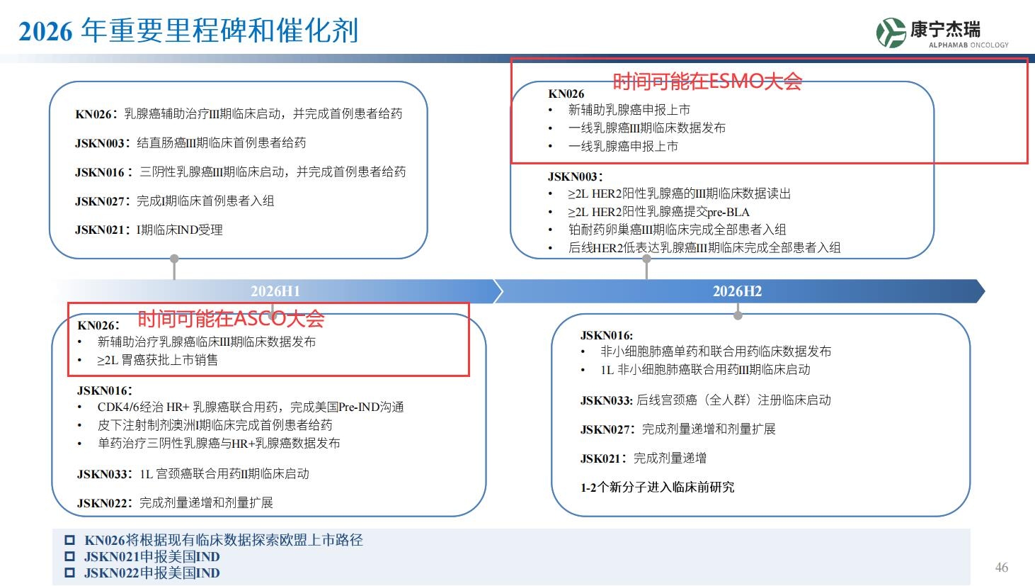 由康宁杰瑞和石药集团合作的KN026治疗乳腺癌的新辅助发布时间大概率应该是在5月29日的2026ASCO大会。石药集团最清楚。