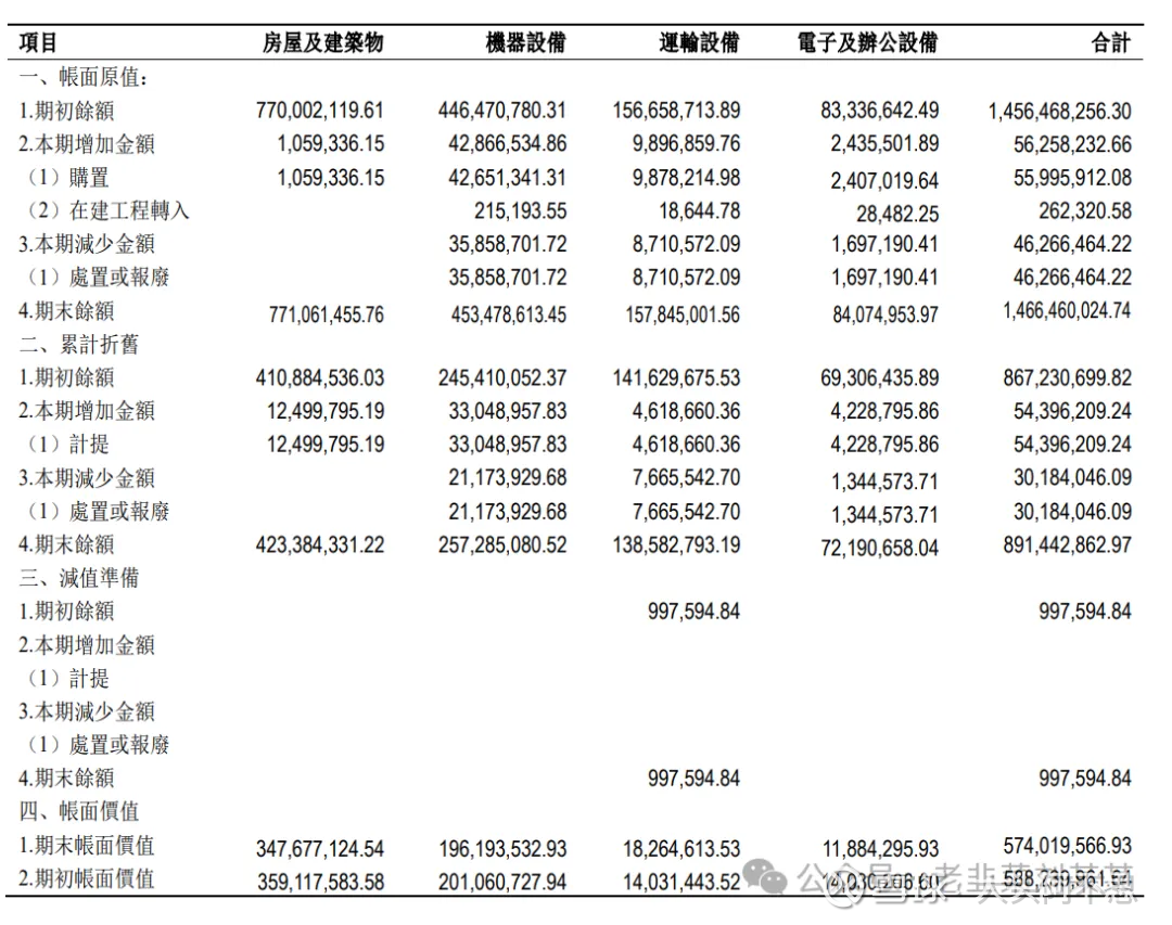 我们还可以看到,固定资产期初原值挺大的,有14.5亿,现在折旧提了很多,只剩下5.9亿了。这也是一个加分项。