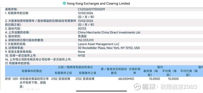 $招商局中国基金(00133)$