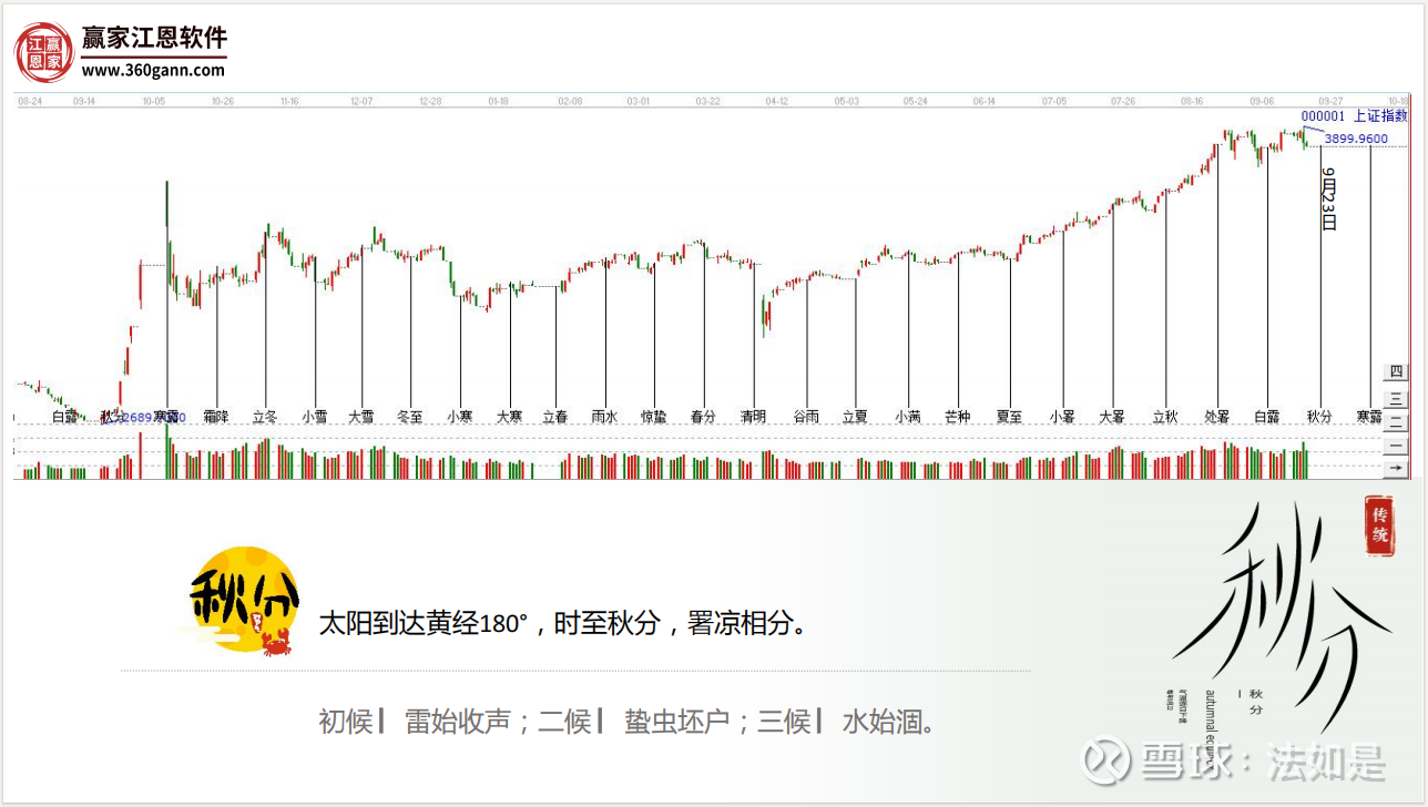 $上证指数(SH000001)$ 秋分处于“极则变”的临界点,秋分后兑金之气盛行,象征刑杀与收获并存,如《易经》所言“兑以利贞,顺乎天而应乎人,君子应安身以候其时!”此象强调顺应天道收敛锋芒,为冬日潜藏做准备。