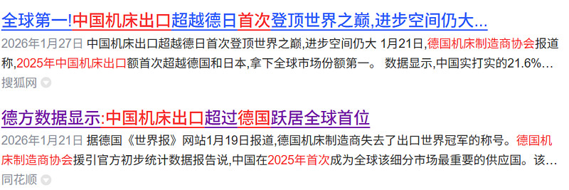 德国机床制造商协会的报告更是揭示了一个里程碑时刻:2025年中国机床出口规模首次超越德国,以21.6%的全球市场份额,超过德国的16.7%,跃居全球首位。