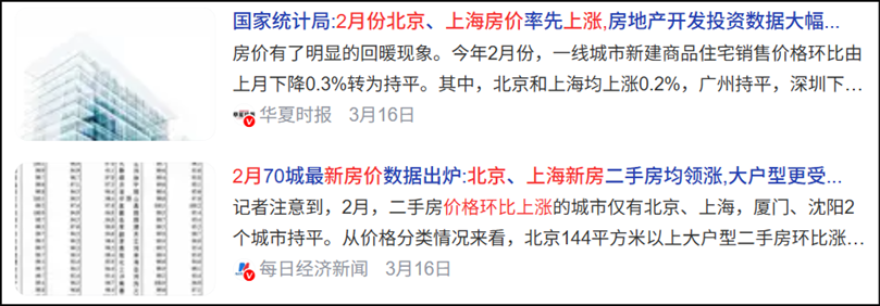 更值得关注的是,一线城市率先出现积极变化——2月北京、上海新房价格环比上涨,二手房价格也终结了连续下跌。3月以来,上海二手房周成交量创下2021年以来新高,北京新房成交环比增长超过30%。