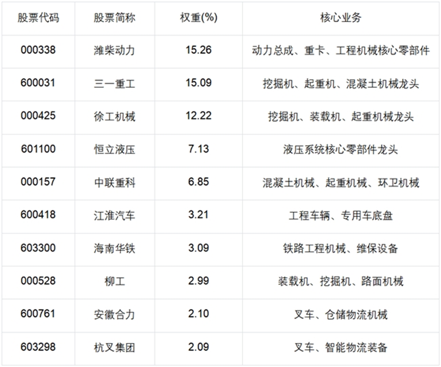 附:工程机械ETF华夏(515970)跟踪指数中证工程机械主题指数(931752)前十大成分股(最新权重)