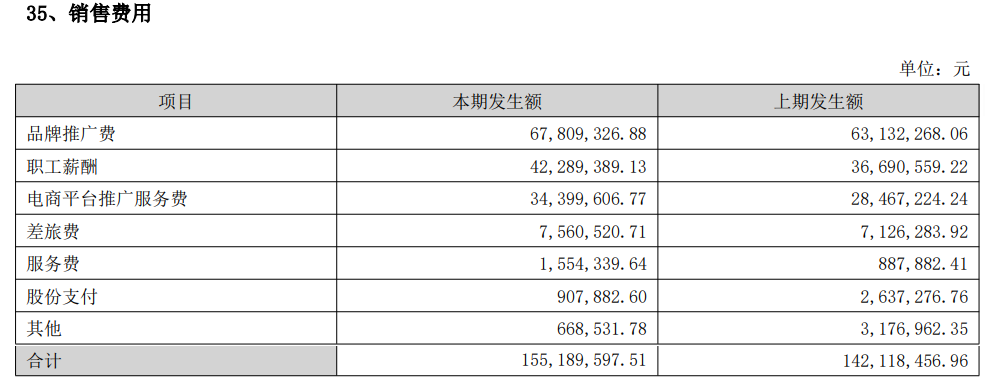 品牌推广费、电商平台推广服务费两项,由去年同期的9160万,增长至10221万,增长1061万。