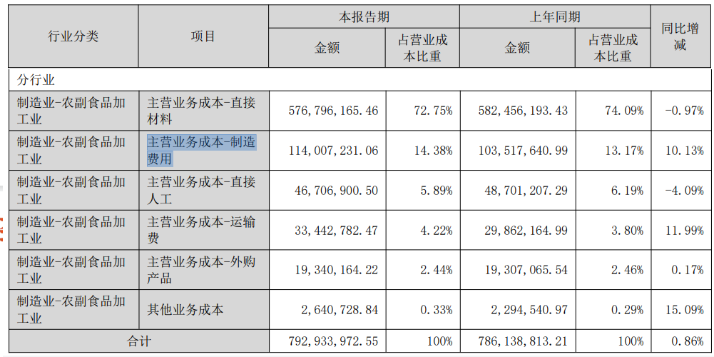 公司的直接原料成本,占营业成本的比重略有下降,显示原材料成本基本问题。增加幅度较大的是制造成本,增长了1049万。制造成本主要包括水电燃气等燃料费用、折旧费用(0.23亿增长至0.26亿)、低值易耗品摊销、车间管理人员(如车间主任)等费用。这方面原因不明。