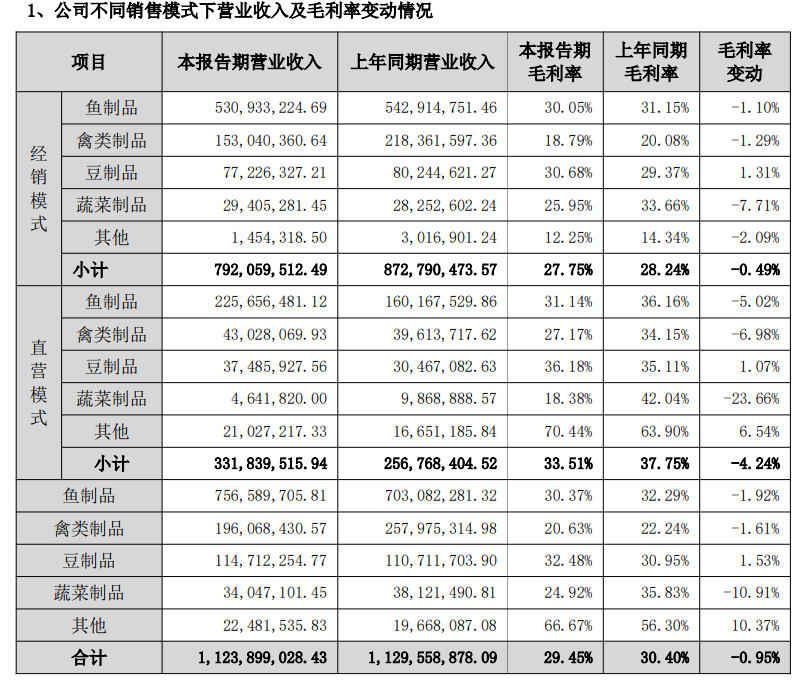 豆制品相对稳定(1.11亿至1.14亿)。蔬菜制品(主要是魔芋)有所下降。