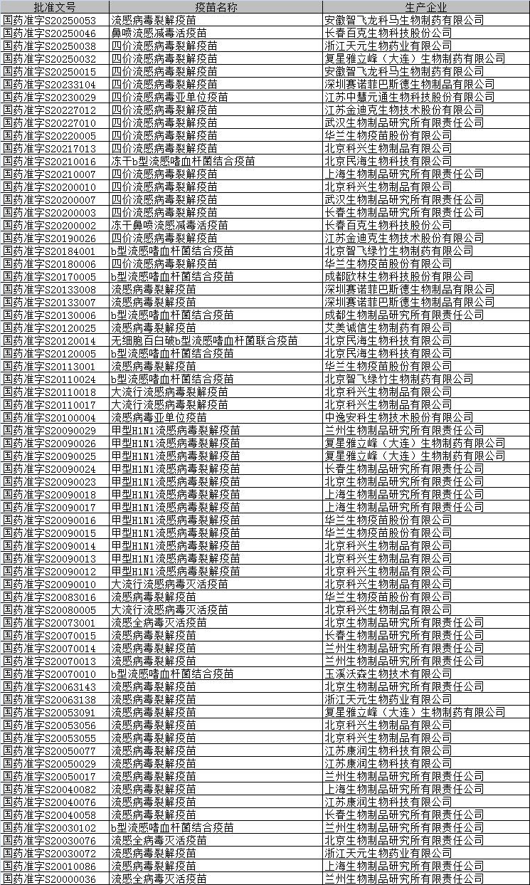2009-2019年,H1N1大流行,陆续问世了甲型H1N1流感病毒裂解疫苗和b型流感嗜血杆菌结合疫苗,同样是针对当时流感情况的单一毒株的流感疫苗。