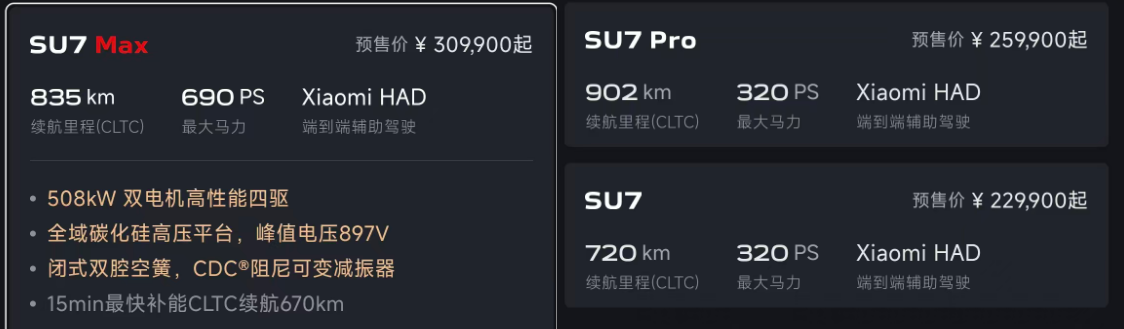 昨天看了下,SU7标准版显示“已售罄”,SU7 PRO、SU7 MAX还可以正常付定金。