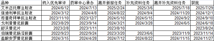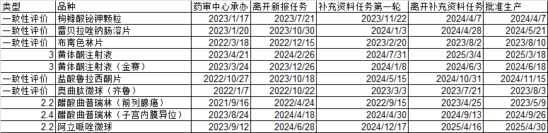 列几个常规品种,可以观察一下审评时间: