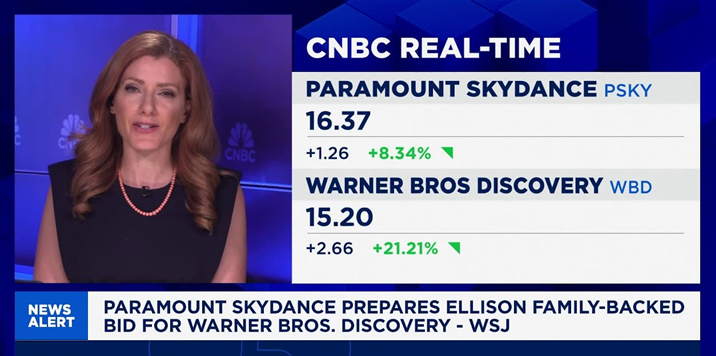 9月11日,多家媒体披露美国科技巨头甲骨文(Oracle)创始人拉里·埃里森(Larry Ellison)之子——大卫·埃里森(David Ellison)所主导的新晋媒体巨头派拉蒙天舞(Paramount Skydance),准备对规模更为庞大的华纳兄弟探索(Warner Bros. Discovery, WBD)发起收购。