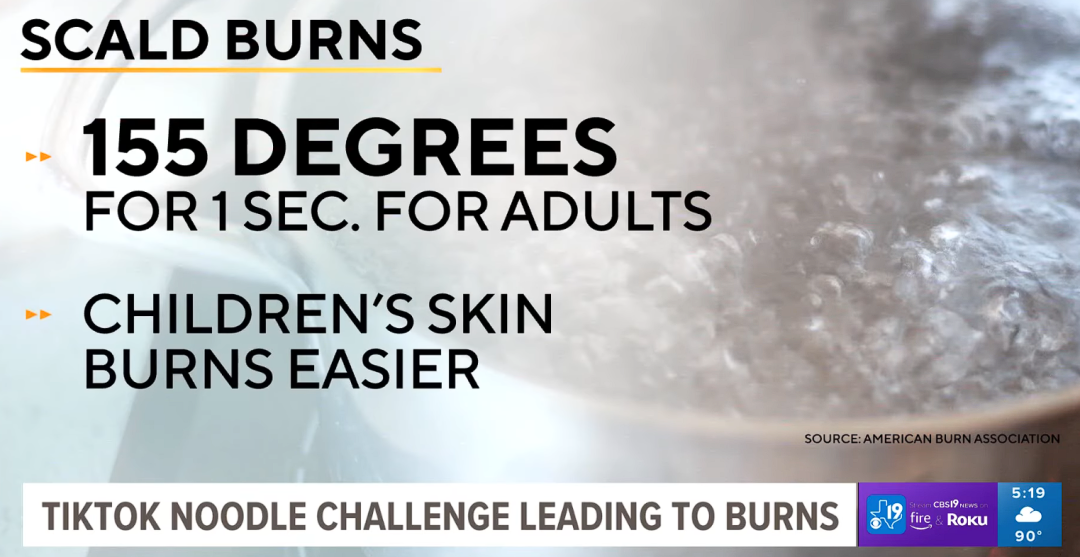 由于许多儿童在没有成人监护的情况下尝试使用微波炉加热泡面,导致了多起严重的烫伤事件。美国烧伤协会等专业医疗机构为此发布了公共安全警示,一些儿童医院报告称每周会接诊两到三名因此而烫伤的儿童。芝加哥大学的一项研究也指出,速食泡面是导致儿童烫伤入院的最常见原因之一。