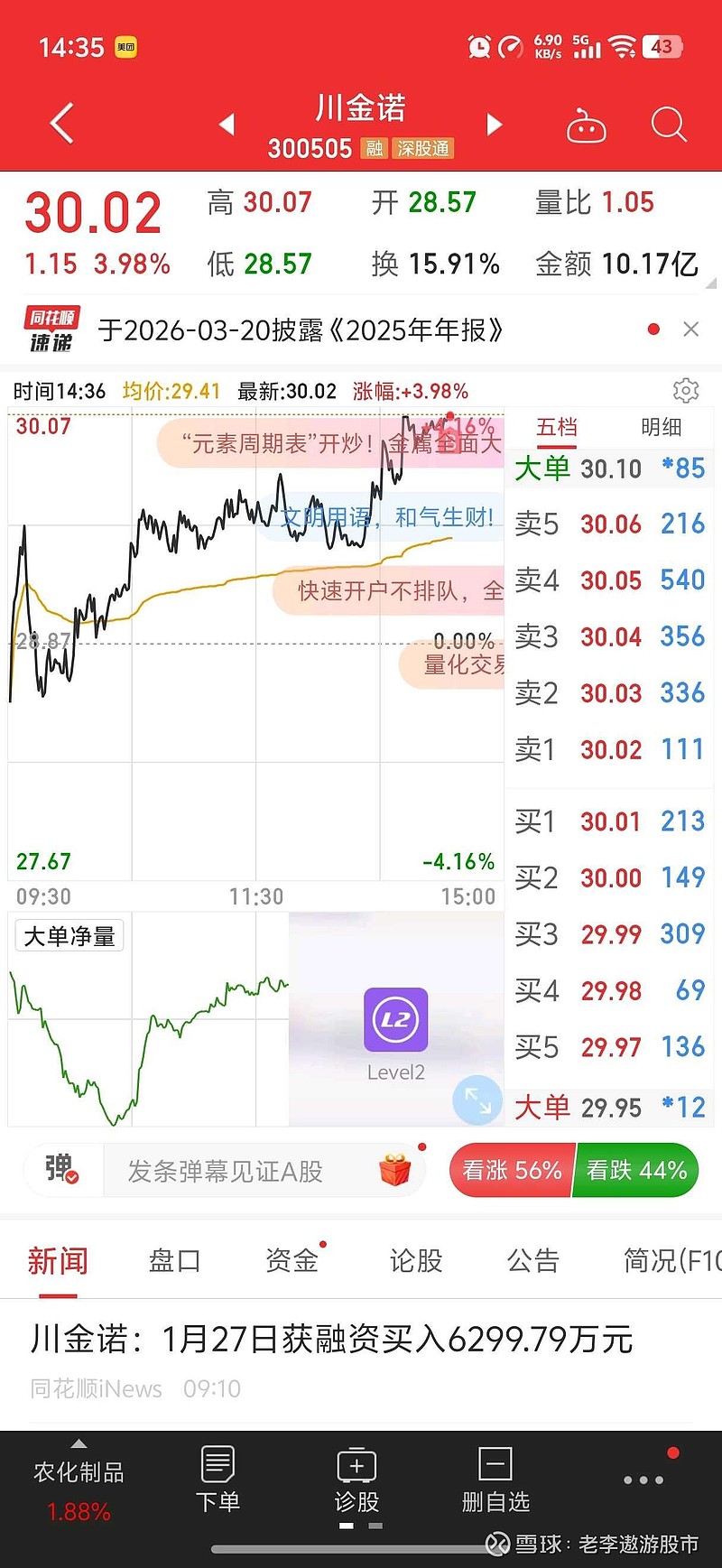$川金诺(SZ300505)$