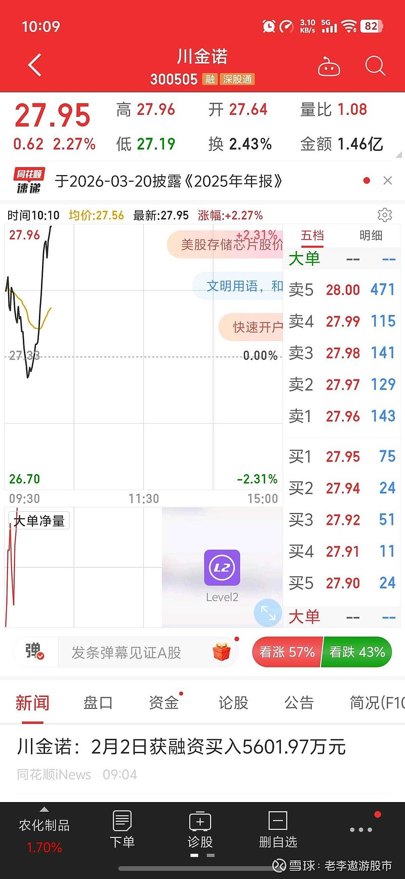 $川金诺(SZ300505)$
