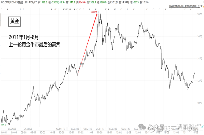 比如《十二五规划》的第一年,2011年,美联储量化宽松水漫全球,国际大宗商品纷纷走出了牛市行情,最典型的是黄金,2011年1月-8月,是上一轮黄金牛市最后的高潮,创出了1900美金的高点,此后将近十年都没有被突破。